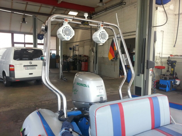 Geräteträger kpl. aus V2A Edelstahl für Schlauchboote mit Festrumpf